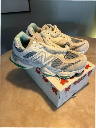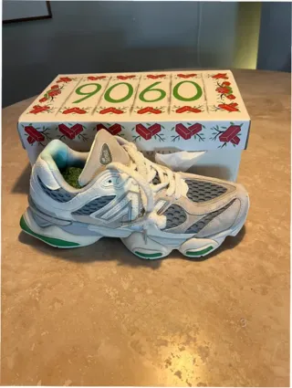 Zapatillas New Balance 9060 con un diseño único. - Combinación de colores verde y blanco. - Talla 45.