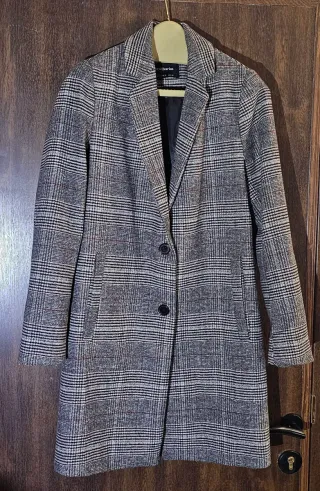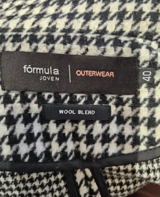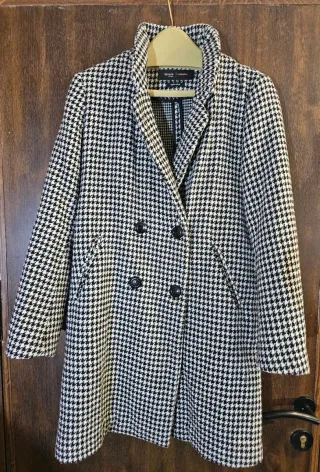 Elegante abrigo de paño con un clásico estampado. - Diseño de doble botonadura. - Cuello solapa. - Bolsillos frontales.