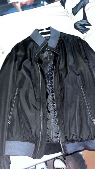 Chaqueta estilo bomber con detalles en gris. - Cierre de cremallera frontal. - Puños y cuello elásticos. - Bolsillos laterales.