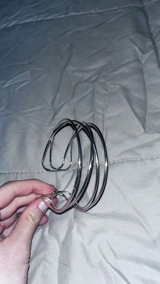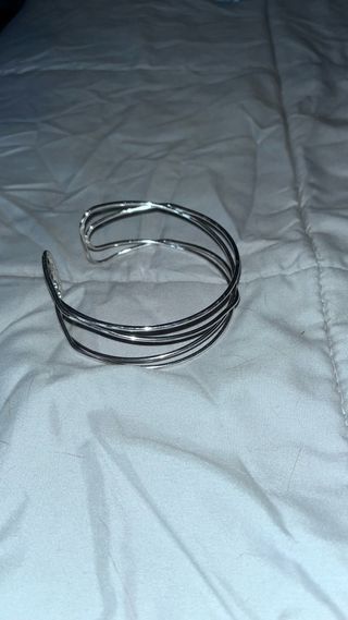 Elegante brazalete con un diseño de alambre entrelazado. - Acabado brillante. - Estilo abierto y ajustable.