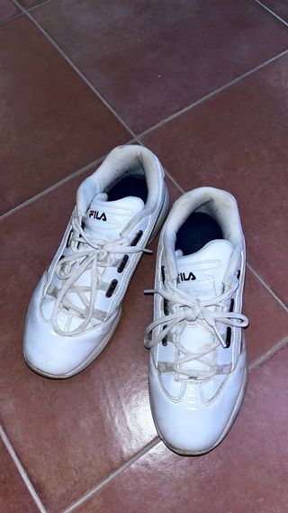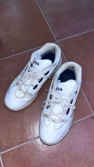 Zapatillas deportivas de la marca Fila en color blanco. - Diseño deportivo. - Cierre con cordones. - Logo de la marca visible.
