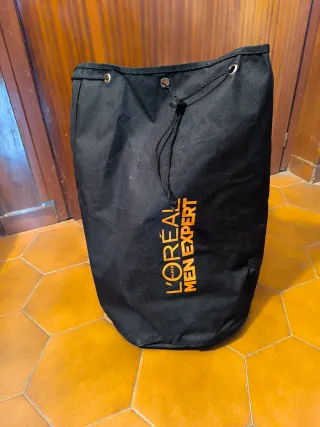 Práctica mochila tipo macuto de L'Oréal Men Expert. - Color negro con detalles en naranja. - Cierre de cordón ajustable. - Asa con cremallera para poder optar a dos asas tipo mochila. - Gran capacidad Envíos a través de wallapop. También entrega en mano en Becerril de la Sierra. Otras ubicaciones consultar.