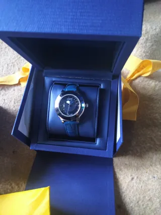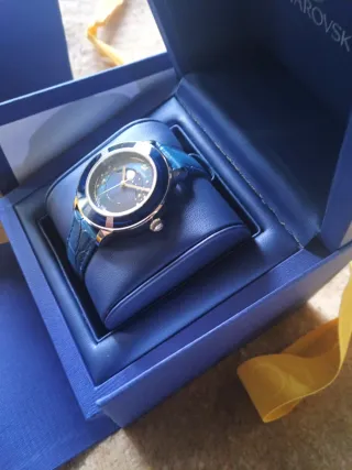 Elegante reloj de la marca Swarovski, ideal para mujer. Presentado en su caja original, listo para estrenar. - Diseño sofisticado con detalles plateados. - Correa azul de alta calidad. Modelo 5516305....octea LUX Moon ls blu....original...maquinaria suiza..se compró a novia en noviembre,..pero la regalé otra joya al final..ideal día de los enamorados...en su caja y bolsa y ticket 3 años de garantía...todo original...comprado en rozas Madrid...abierto para foto y no tocado con las manos ni sacado de su encaje de su caja...impecable...