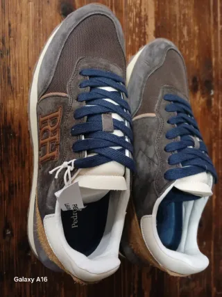 Zapatillas de la marca PDH en tonos marrones y azules. Diseño moderno y cómodo. - Parte superior de ante y malla. - Cordones azules. - Suela de goma.
