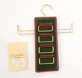 Elegante percha para corbatas fabricada por Diamond Piel S.L. en Ubrique (Cádiz) para Eudidio Tucci en El Corte Inglés. Está nuevo sin usar, en excelentes condiciones y aún con su etiqueta. Diseño sofisticado. Material de alta calidad. Color verde y rojo.