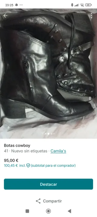 Botas cowboy Camila's T41 negras cuero