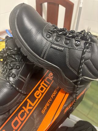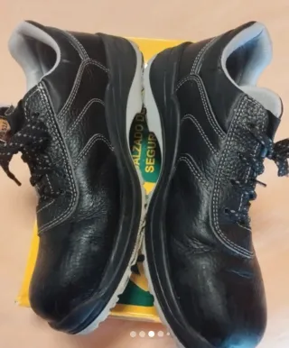 Calzado de seguridad en color negro. Diseñados para ofrecer protección y comodidad. - Material exterior de cuero. - Cierre con cordones. - Suela resistente. Si se llevan las 2 por 20€