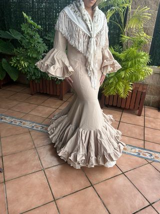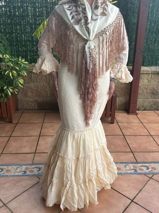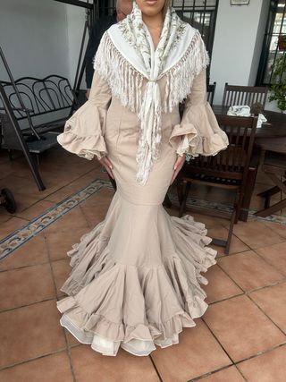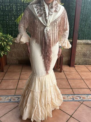 Traje de flamenca beige con manton