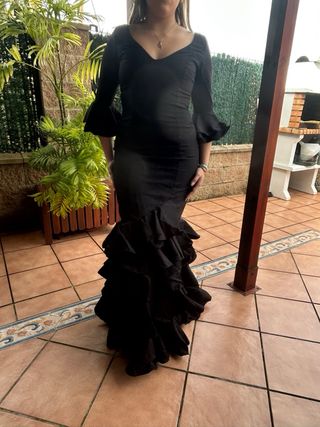 Traje de flamenca negro con volantes