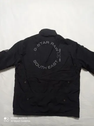 (120-250)(20-60) Chaqueta G-Star Raw en color negro.Diseño moderno y funcional. Está en perfecto estado!! Talla L. Medidas: Ancho Axila-Axila: 60 cm. Largo: 65 cm. - Cierre frontal con cremallera. - Bolsillos con solapa y botones. - Cuello alto. - Detalle de parches en manga.