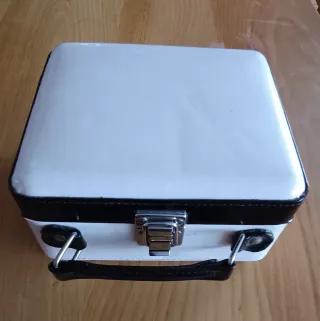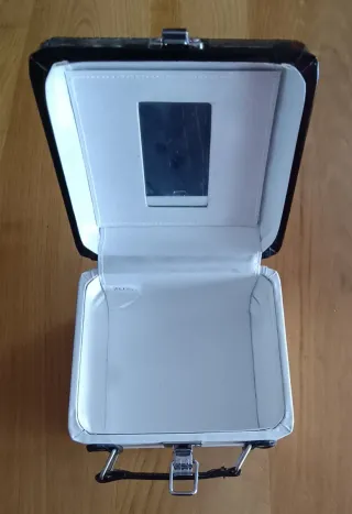 Pequeño maletín con un diseño bicolor. - Asa de mano. - Cierre metálico de seguridad. - Ribete negro. - Espejo - Medidas 15x17cm