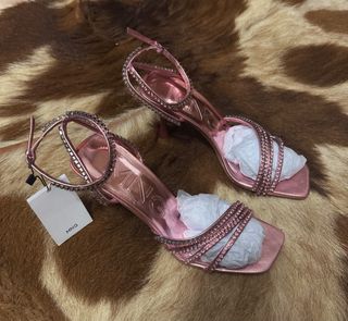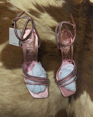 Sandalias Mango Tacon Brillantes Rosa Talla 38