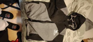 Conjunto de chándal con diseño de bloques de color. - Paneles en gris y negro. - Cremallera frontal. - Capucha con cordón. - Logo en la manga.