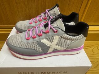Playeros Munich nuevos, sin usar. Combinan un diseño moderno con detalles en gris y rosa. - Cierre con cordones. - Suela de goma. - Detalle de la marca en la lengüeta. - Regalo de cordones negros
