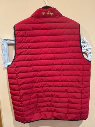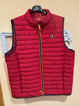 Chaleco acolchado con un diseño moderno y cómodo.Marca El Pulpo. Talla 2XL. - Colección exclusiva en colaboración con RFEF (Real Federación Española de Fútbol). - Cremallera frontal. - Cuello alto. - Logo circular en el pecho de goma. - Bolsillos laterales e interior.