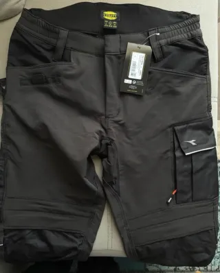 Pantalón de trabajo Diadora Utility en color negro. Nuevo a estrenar. - Talla L - Diseño italiano. - Etiqueta de colección Utility. - Cierre de botón y cremallera. - Bolsillos frontales y traseros. - Trabillas para cinturón. - Resistente y flexible, cintura elástica, múltiples bolsillos, detalles reflectantes.