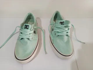 Zapatillas de la marca DC en color verde menta. - con signo de desgaste pero todavía tienen vida de uso. - Diseño deportivo y casual. - Cierre con cordones. - Suela de goma.