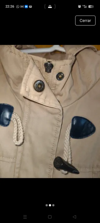 Chaqueta de entretiempo con un diseño clásico y versátil. Cremallera sin tirador , funciona bien aún así . - Cierre de botones y cordones. - Capucha integrada. - Bolsillos frontales. - Detalle de botones en contraste.