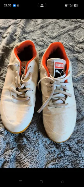 Zapatillas de fútbol sala Puma blancas y naranjas