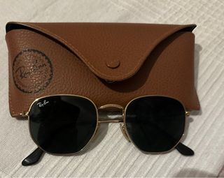 Gafas de sol Ray-Ban con montura dorada y lentes verde/negras. - Diseño hexagonal. - Incluye funda. - Logo de Ray-Ban en la lente.
