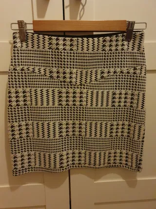 Minifalda con un llamativo estampado. - Diseño de pata de gallo y otros patrones. - Cintura elástica para mayor comodidad.