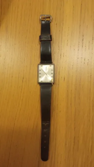 Elegante reloj de pulsera Festina con una esfera plateada y detalles clásicos. La correa es de cuero negro. - Esfera cuadrada. - Correa de cuero. - Mecanismo de 17 rubíes. - falta la ruedecilla