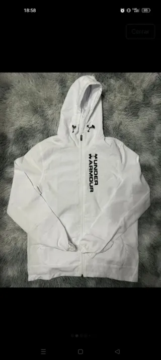 Chaqueta acolchada con capucha de pelo sintético. - Cierre de cremallera. - Bolsillos laterales. - Puños elásticos. Fue un regalo de reyes pero la talla es mas pequeña de lo que necesito. Lo vendo porque por dos dias no me han dejado descambiarlo por otra talla.