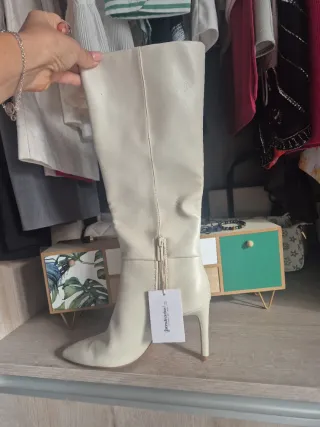 Botas de Piel Beige con Tacón