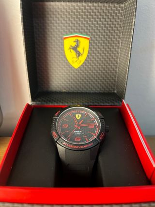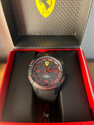 Scuderia Ferrari Apex, modelo 0830662. *A ESTRENAR* (Nunca se le quito la tira se la corona, por lo que bateria al 100%) - Presenta un diseño deportivo en negro con detalles rojos. - Caja de 44mm. - Cuenta con una correa de silicona. - Resistente al agua hasta 3 ATM. - Movimiento de cuarzo.