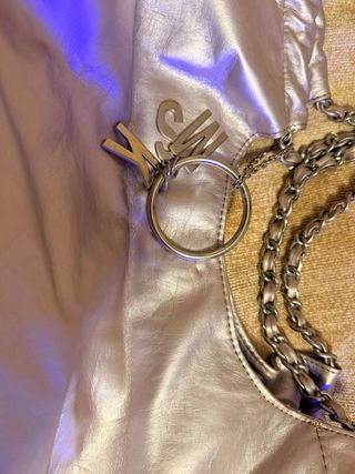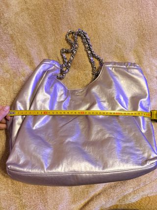 Bolso de estilo hobo con un acabado metalizado. - Diseño moderno y llamativo. - Cadena plateada para llevar al hombro. Envíos rápidos