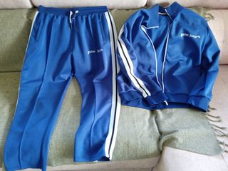 Conjunto deportivo completo de Palm Angels. - Chaqueta con cremallera frontal. - Pantalones con cintura elástica y cordón y cremellera inferior. - Diseño con rayas laterales. - Color azul.