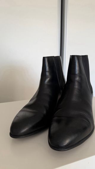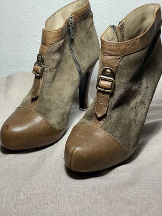 Botines de tacón de Adolfo Dominguez de cuero original. Con signos de uso, como se puede ver en las fotos de ahi su precio.