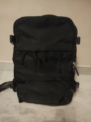 Mochila de cabina con tamaño permitido para cualquier aerolínea. Está nueva. No se ha usado nunca. Tiene varios bolsillos y compartimentos.