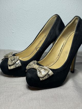Zapatos negros tacón alto lazo