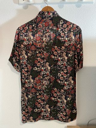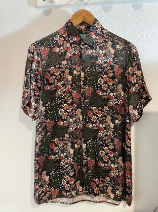 Camisa de manga corta del Zara para hombre con un llamativo estampado floral. - Diseño de cuello clásico. - Cierre de botones. - Tejido ligero y cómodo. En perfecto estado