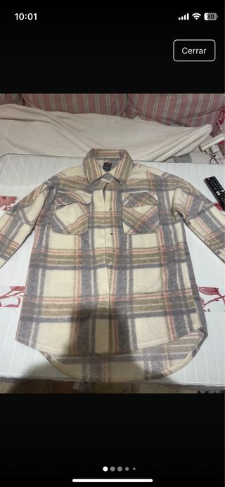 Chaqueta de tacto suave con estampado de rayas. - Diseño de cuadros. - Bolsillos en la parte delantera. - Cuello camisero.