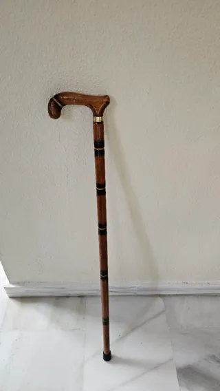 Elegante bastón de madera con detalles dorados