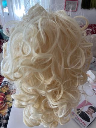 Peluca rizada rubia disfraz mujer años 70 80