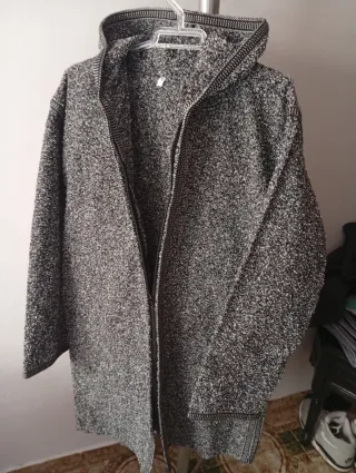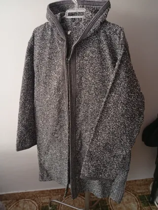 Chilaba con un diseño moderno y cómodo. - Tejido texturizado en tonos grises y negros. - Cierre de cremallera frontal. - Capucha integrada. - Detalle de ribete en contraste en puños y bajo.