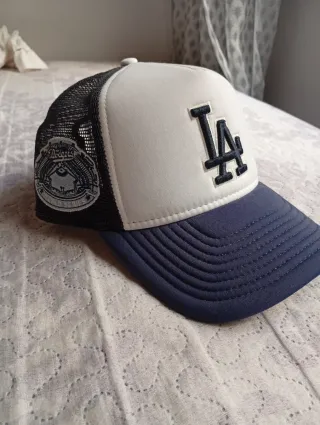 Gorra de béisbol con el logo de los LA Dodgers. - Diseño de malla en los laterales. - Parte frontal blanca con el logo LA bordado. - Visera y parte trasera en color azul marino.