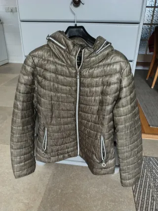 Chaqueta acolchada con capucha y cremallera frontal. Presenta un diseño moderno y ligero, ideal para el entretiempo. - Bolsillos laterales con cremallera. - Acabado brillante sutil. - Capucha integrada con detalle de ribete.