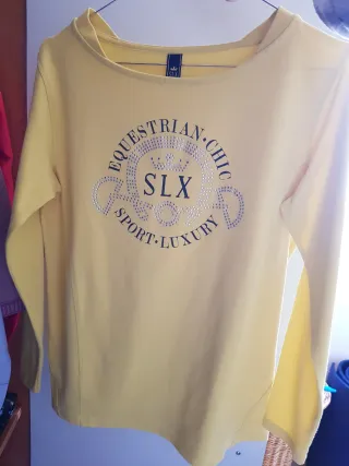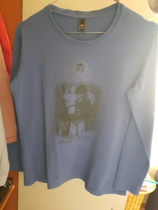Conjunto de dos camisetas de manga larga para mujer. - Diseño con estampado Equestrian Chic Sport Luxury. - Detalle de pedrería en el logo y el estampado. - Cuello redondo y corte moderno. - Tejido suave y cómodo.