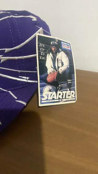 Gorra Starter original años 90, modelo NFL Pro Line Authentic – Splash. Estado deadstock, nunca usada, con etiquetas originales y precio en pesetas. Incluye una etiqueta adicional “Patent Pending”, signo de producción temprana y tirada limitada. RN 67879 – Starter auténtica. Ajustable por la parte trasera. Colores vivos, bordado perfecto y estructura intacta. Pieza poco común, ideal para coleccionistas de NFL o Starter. Envío rápido y bien protegida. Etiquetas / keywords starter, nfl, vikings, splash, vintage, 90s, deadstock, pro line, patent pending, snapback, coleccionista