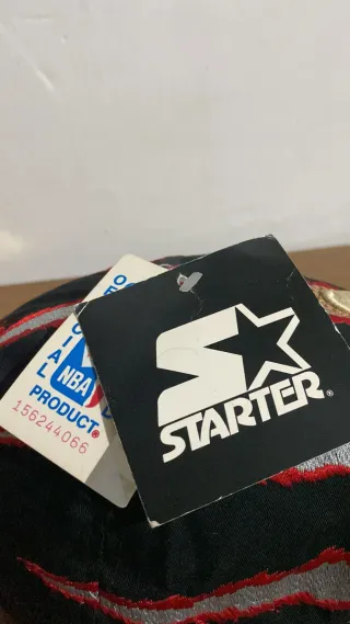 Gorra Starter original de los años 90, modelo NBA Panel Stripe. Estado deadstock, completamente nueva, sin estrenar, con todas las etiquetas originales, incluido el precio en pesetas (2.995 pts). Etiqueta interior CA 06311. Ajustable por atrás. Bordado grueso del logo clásico de los Chicago Bulls. Colores intensos, estructura firme, sin roces ni daños. Pieza auténtica de colección, muy difícil de encontrar en este estado. Envío rápido y perfectamente protegida. Etiquetas / keywords starter, nba, bulls, chicago bulls, panel stripe, vintage, 90s, deadstock, jordan era, snapback, gorra clásica, coleccionista