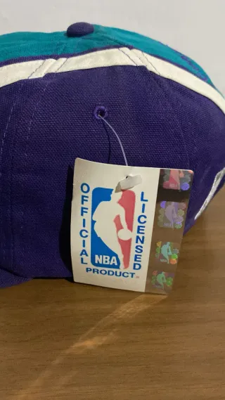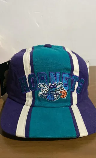 Gorra Starter original años 90, modelo NBA Panel Stripe con los colores clásicos teal & purple de los Charlotte Hornets. Estado deadstock, completamente nueva, sin usar, con todas las etiquetas originales y precio en pesetas (2.995 pts). Etiqueta interior RN 67879. Ajuste trasero. Bordado grueso del logo Hornets, colores vivos y estructura perfecta. Modelo muy buscado dentro del coleccionismo NBA 90s. Envío rápido y bien protegido. Etiquetas / keywords starter, nba, hornets, charlotte hornets, panel stripe, vintage 90s, deadstock, teal, purple, snapback, pro line, gorra coleccionista