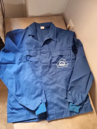 Conjunto de uniforme de trabajo. - Chaqueta talla 58 con cuello camisero y bolsillos frontales. - Pantalón talla 50 Las tallas vienen pequeñas - Logo bordado en la chaqueta y el pantalón.