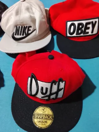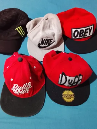 -Vendo colección de gorras planas, Casi sin usar, apenas me la he puesto. -Todas nuevas y en buen estado. -De diferentes Marcas y Colores -Ideal para coleccionistas -Precio por separado, NEGOCIABLE (MARCAS: NIKE, OBEY, MONSTER, CERVEZA DUFF, PULL&BEARS..)