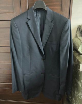 Traje elegante de dos piezas en color azul marino. - Chaqueta con solapa de muesca. - Cierre de dos botones en la chaqueta. - Bolsillos frontales con solapa. Usado una vez Altura 170 - pecho 96