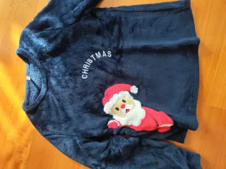 Pijama polar con diseño navideño de Santa Claus. Perfecto para las noches frías. - Tejido suave y cálido. - Estampado de Santa Claus. - Detalle de texto 'CHRISTMAS'.