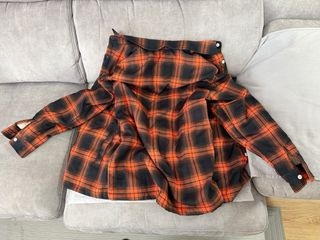 Sobrecamisa con forro interior cálido y diseño a cuadros. - Diseño a cuadros en tonos naranja y negro. - Forro interior de borreguito blanco.